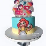 Этот яркий торт словно сошел со страниц соцсетей! Его поверхность украшена множеством разноцветных лайков, создающих праздничное настроение. Чередование сочных оттенков – розового, голубого, желтого и зеленого – делает торт по-настоящему жизнерадостным. Фотопечать придает декору четкость и насыщенность, а круглая форма подчеркивает современный стиль. Такой торт станет центром внимания на любом мероприятии, заряжая всех вокруг позитивом.