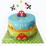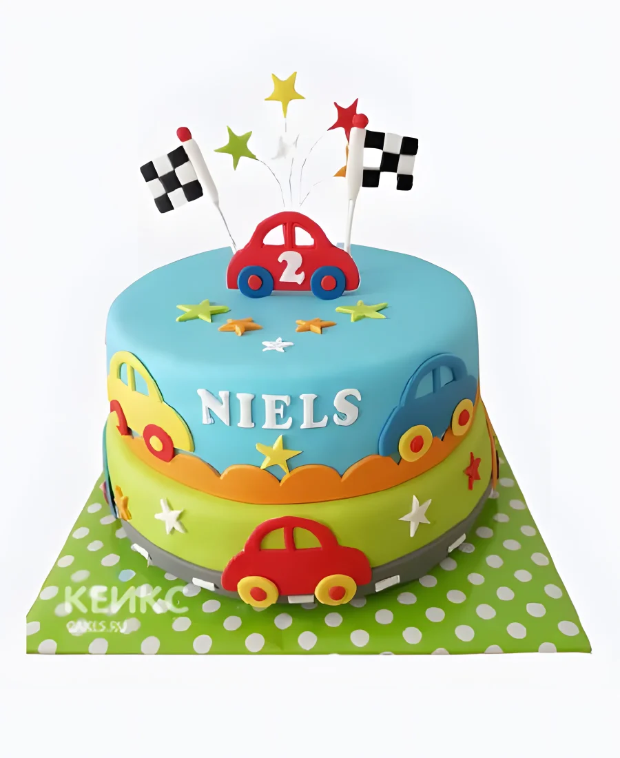 Разноцветный торт с машинками и флагом