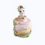 Розовенький торт девочке на 9 лет с единорогом и цветами