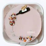 Розовый бенто-торт с бутылкой вина и цветами