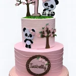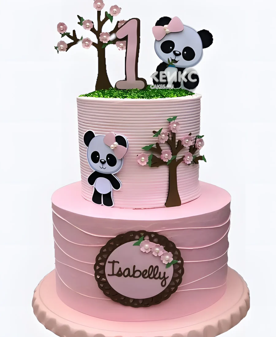 Розовый двухъярусный торт с пандой