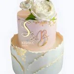 Свадебный торт розово-золотой с инициалами