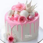 Розовый торт девочке с цветами и короной