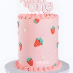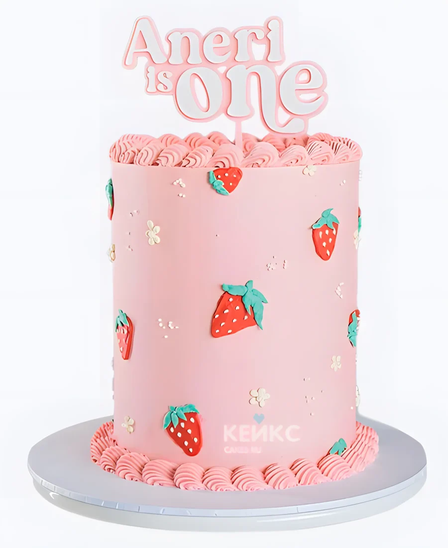 Розовый торт девочке с кремовыми клубничками
