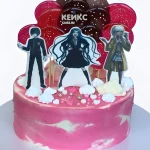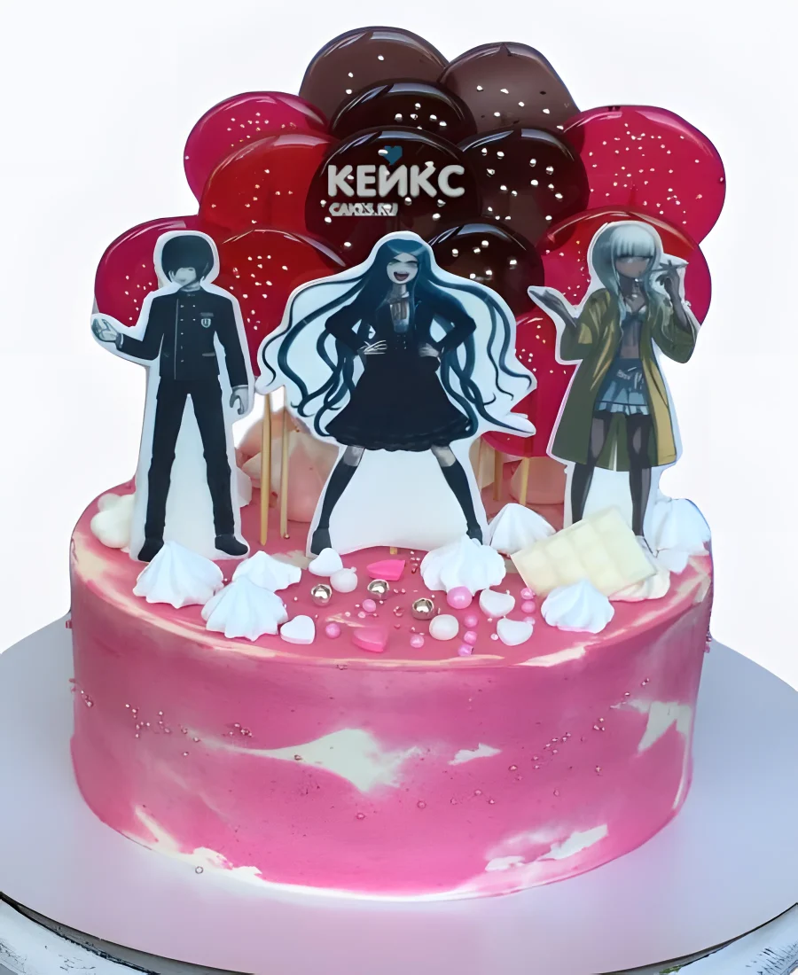 Розовый торт на день рождения с леденцами аниме Данганронпа
