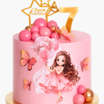 Розовый торт принцесса с акриловым топпером