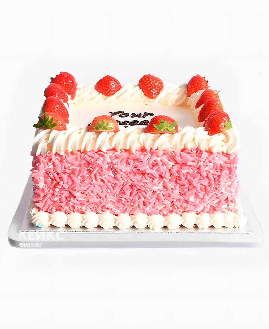 Розовый торт с клубникой для девочки