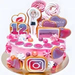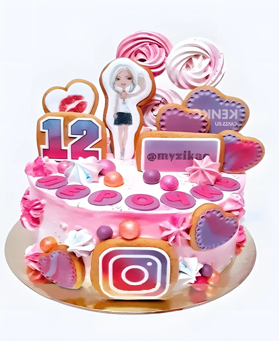 Розовый торт с пряниками и инстаграм
