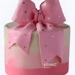 Розовый тортик с бантиком в золотой горошек для девочки