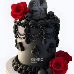 Шикарный черный торт на Хэллоуин с розами