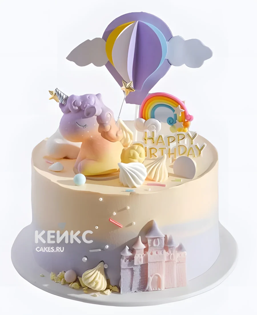 Шикарный бенто торт на годик девочке с единорогом и замком