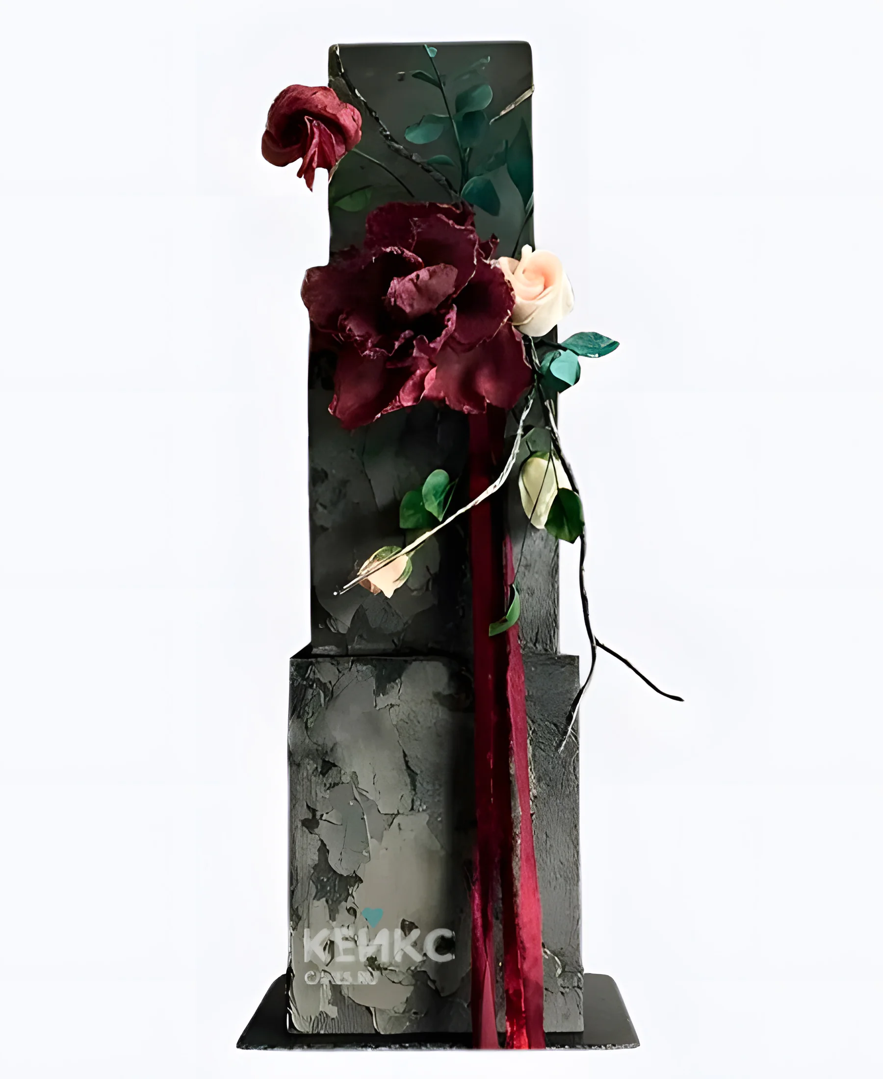 Шикарный свадебный торт Черный квадрат с красным цветком