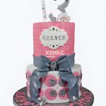 Этот двухъярусный торт в нежной розово-золотой гамме создан для особенного праздника. Верхний ярус украшен объемной цифрой «13», перевязанной изящным бантом, словно драгоценный подарок. Нижний ярус декорирован тонкими золотыми линиями и нежными рюшами, добавляющими торжественности. Мягкие складки мастики создают эффект шелковистой ткани, а общая композиция напоминает изысканную шкатулку. Торт выглядит одновременно празднично и утонченно, идеально передавая атмосферу важного дня.