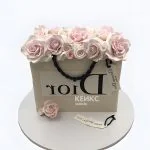 Шикарный торт на 25 лет в виде пакета диор с розами