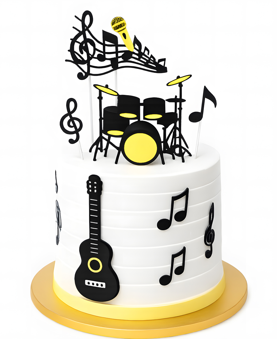 Торт с барабанами, гитарой и нотами