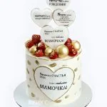 Этот торт – настоящее произведение искусства, где нежная кремовая глазурь создает ощущение воздушности и легкости. Яркие ягоды, разбросанные по поверхности, словно драгоценные камни, придают торту праздничный и свежий вид. Элегантная надпись добавляет индивидуальности, делая его особенным для любого случая. Сочетание белоснежного крема и сочных ягод создает контраст, который притягивает взгляд и вызывает восхищение.