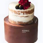 Шоколадный свадебный торт Красный цветок с ежевикой