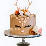 Шоколадный торт девочке на 9 лет с мордочкой оленёнка и цветами