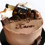 Этот торт создан для настоящих ценителей стиля! На шоколадной поверхности – эффектная бутылочка виски, выполненная с фотографической точностью. Темно-коричневые и золотистые оттенки придают торту благородный и мужественный вид. Минималистичный дизайн с акцентом на одну деталь выглядит современно и лаконично. Торт будто рассказывает историю – о вечере в хорошей компании, о важном празднике или просто моменте наслаждения.
