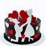 Шоколадный торт на сватовство с влюбленными и сердцами