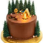 Шоколадный торт с палаткой в лесу