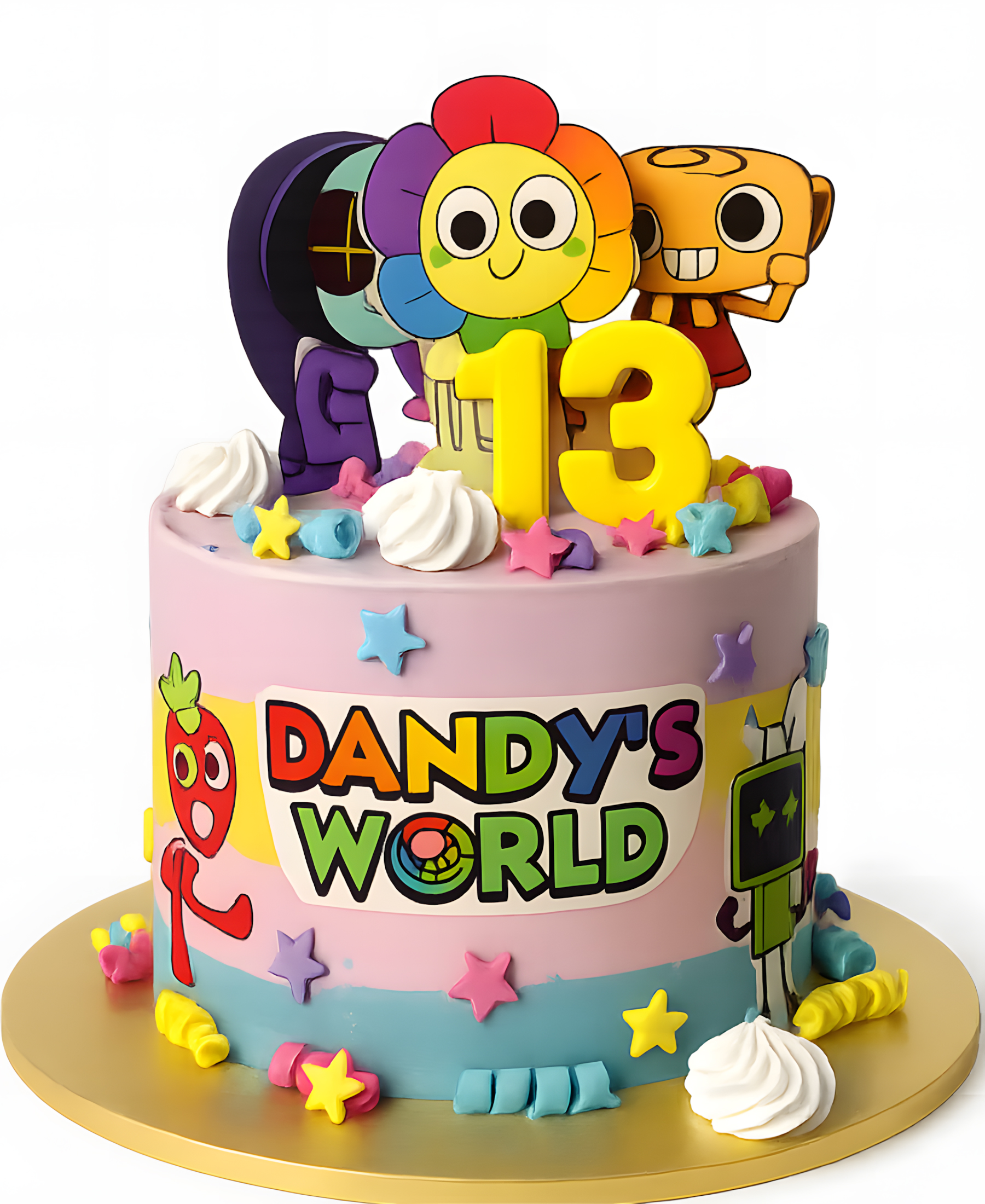 Симпатичный торт на 13 лет с мастичными завитушками