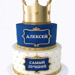 Сине белый торт с короной мужу