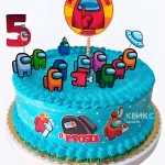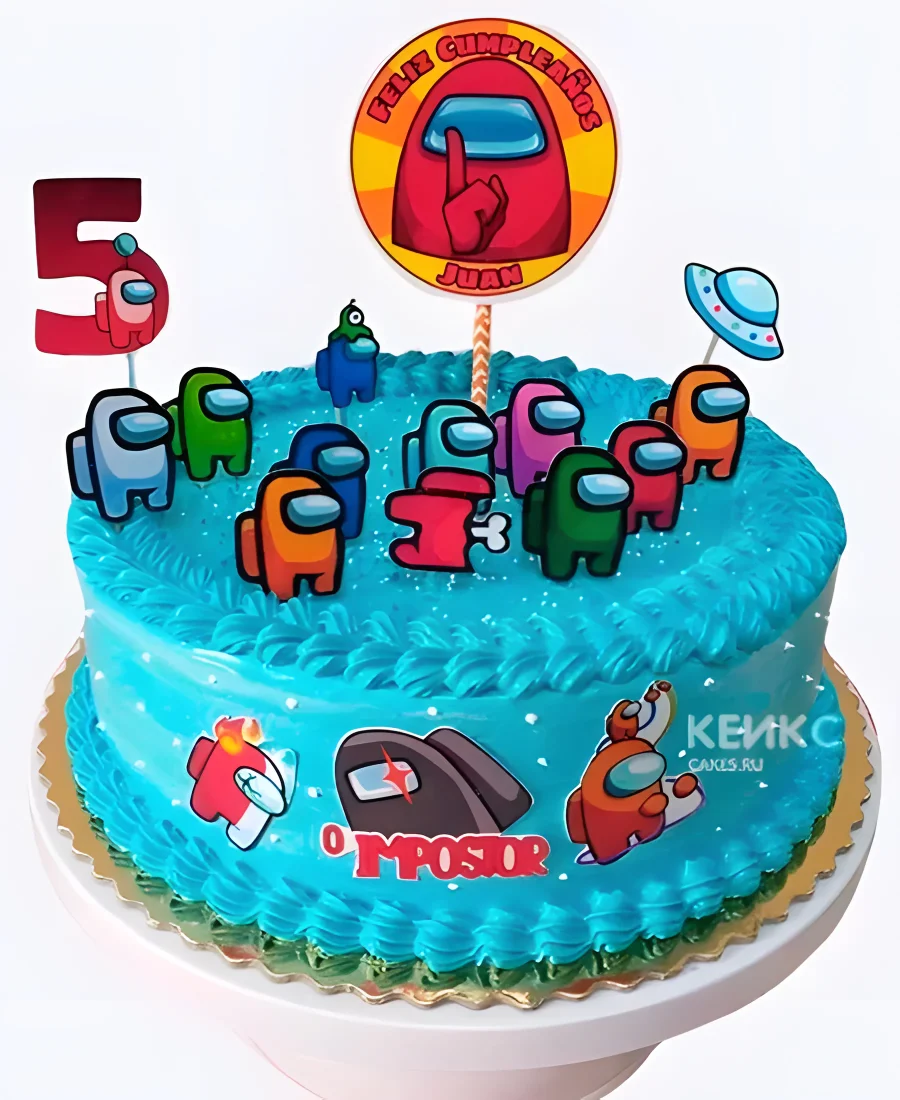 Сине-голубой торт на пятый день рождения по игре Among Us