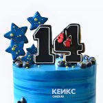 Синий бенто торт на 14 лет с голубикой и цифрой