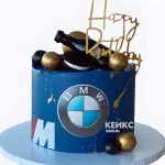 Синий торт БМВ с топпером и бутылкой