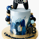 Синий торт с фигуркой джойстика