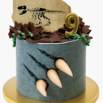 Синий торт с когтями и наскальным рисунком динозавра из Юрского периода