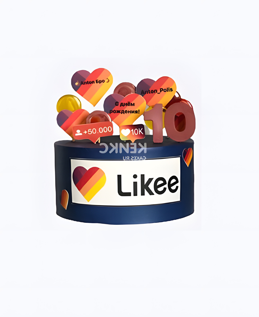 Синий торт с лайками и цифрой
