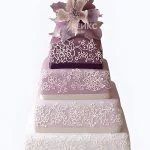 Сиреневый свадебный торт квадратный с узорами