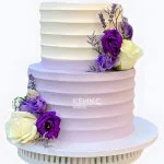 Сиреневый свадебный торт рифленый омбре с розами