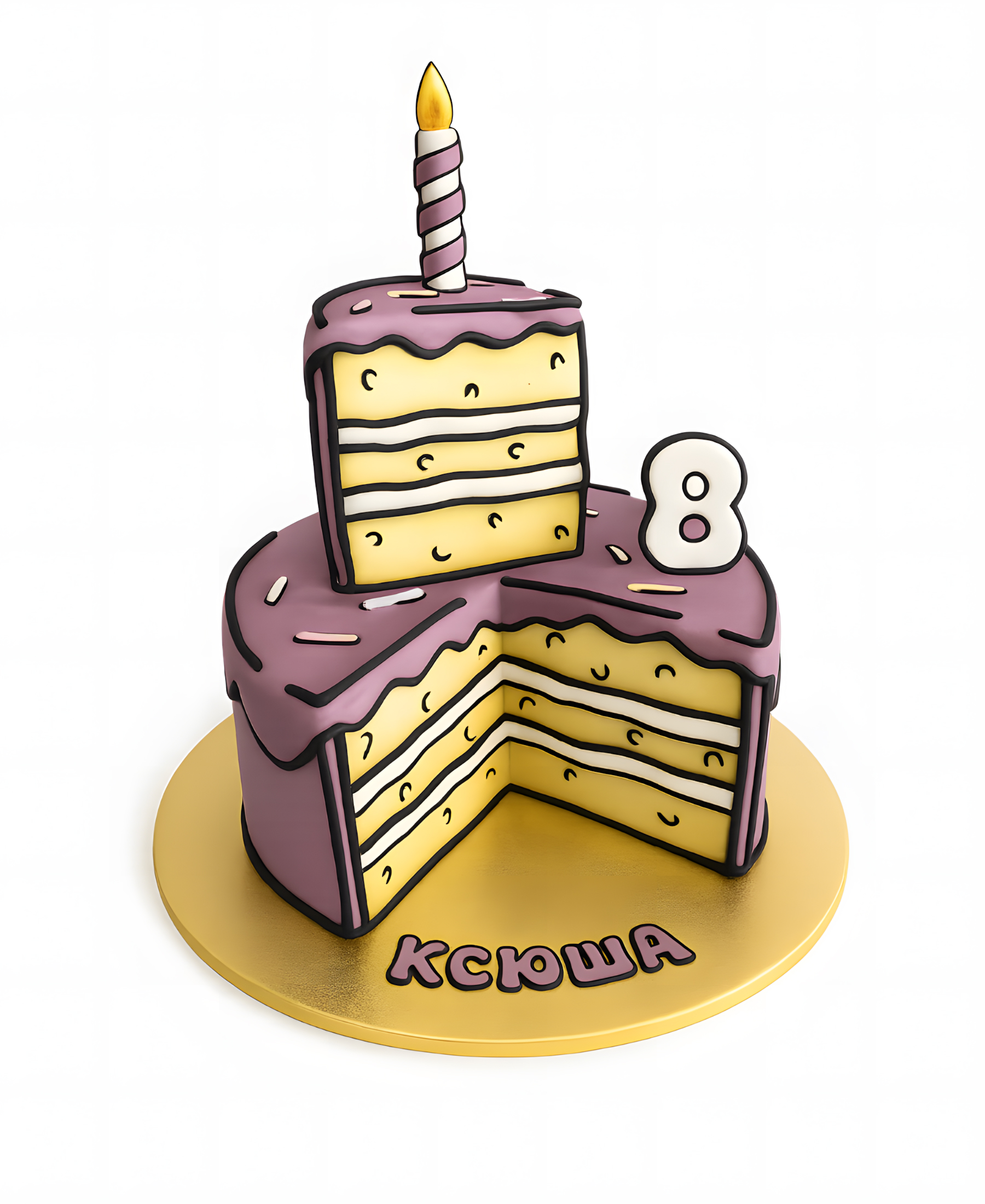 Сиреневый торт в два яруса на 8 лет