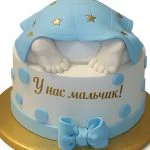 Сияющий торт на рождение мальчика с памперсом и звездами