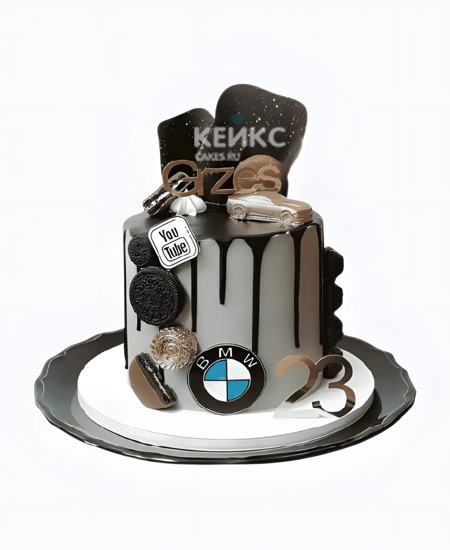 Сладкий торт мужчине на день рождения с подтеками и логотипом