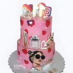 Стильный двухъярусный розовый торт девочке на 11 лет