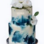 Свадебный торт бело-синий с белыми розами