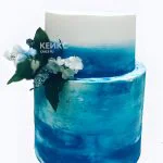 Свадебный торт бело-синий с нежной веточкой