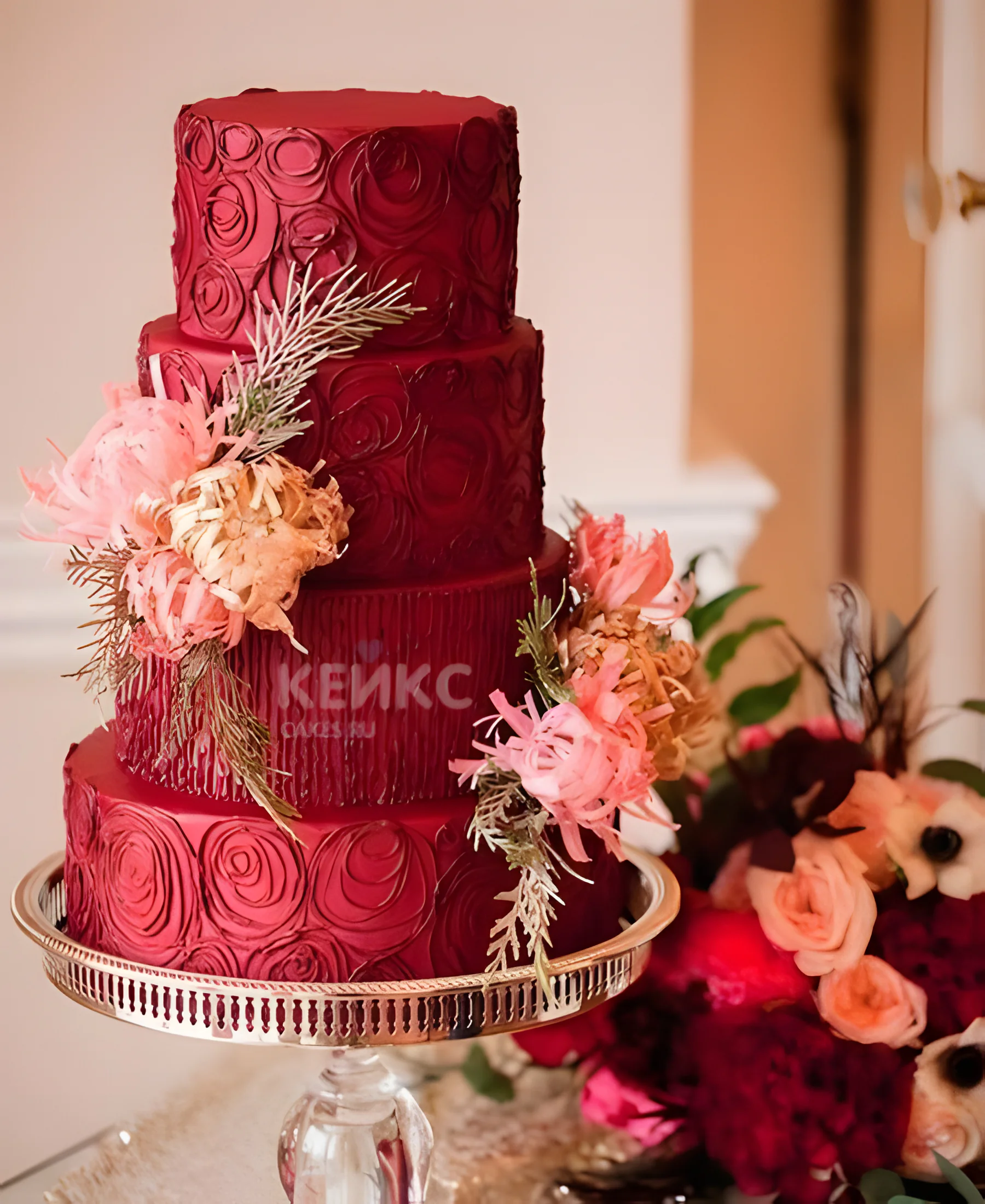 Свадебный торт в бордовом стиле