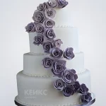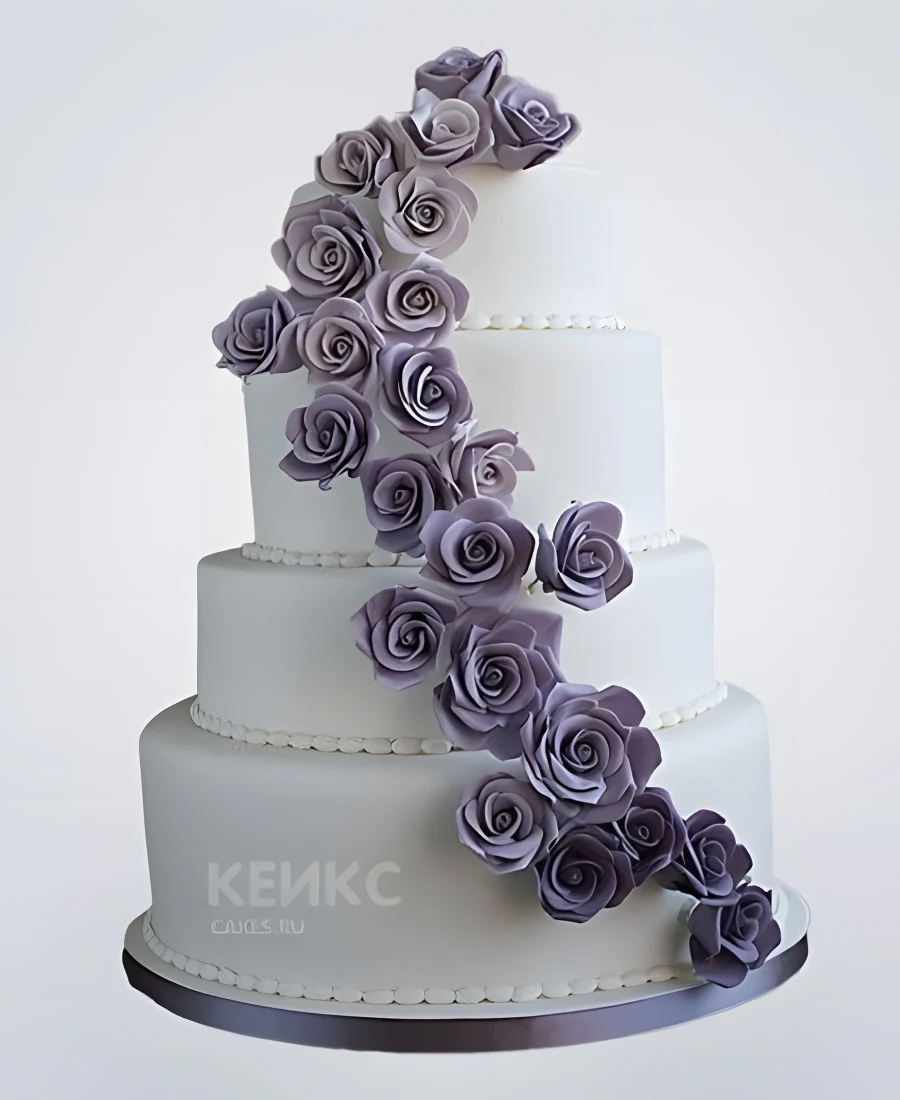 Четырехъярусный свадебный торт с фиолетовыми цветами