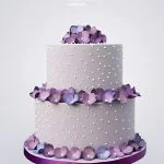 Фиолетовый свадебный торт с цветами и жемчужинами