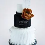 Свадебный торт Гэтсби белый с черным, перья, жемчуг, цветы