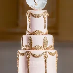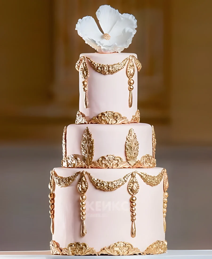 Свадебный торт Гэтсби трехъярусный, золотой узор, магнолия