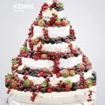 Свадебный торт голый пятиярусный, изобилие ягод