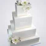 Этот элегантный свадебный торт в форме высокого квадрата выглядит по-настоящему торжественно. Четыре яруса белоснежной мастики создают строгий, но изысканный силуэт. Украшение из нежных белых нарциссов придает композиции свежесть и легкость. Цветы расположены асимметрично, что добавляет современный акцент классическому дизайну. Чистые линии и благородная белая цветовая гамма делают этот торт прекрасным дополнением к свадебному торжеству.