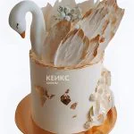 Свадебный торт Лебедь с золотой окантовкой и белыми цветочками