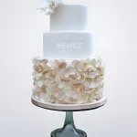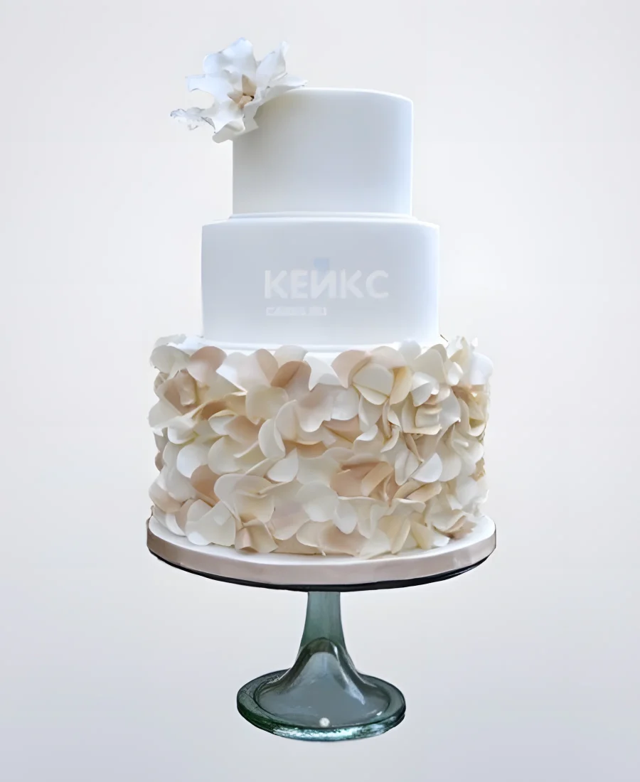 Трехъярусный белый маленький свадебный торт с цветами